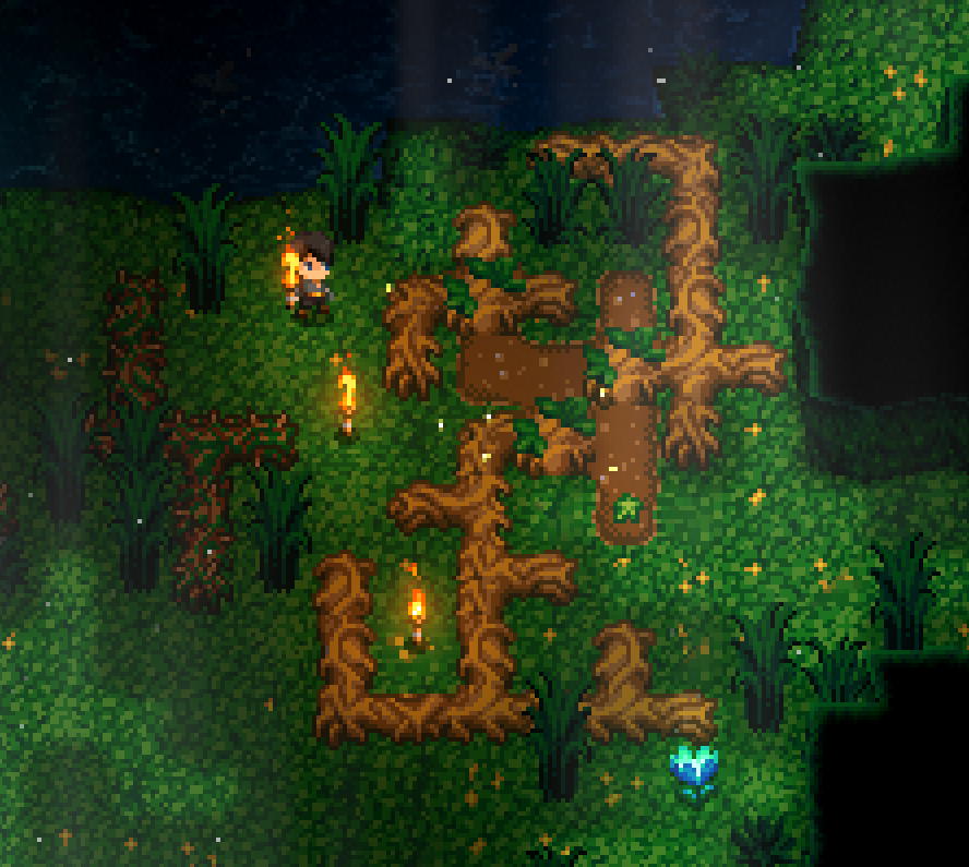 Introducing the Root Plant! When a player harvests wood, the wood now has the chance to drop seeds that can be planted to re-grow wood, making this a farmable resource. No more struggling to choose between tools, weapons, or decorations! It may take you a little while to farm a sizeable crop, so you may have to prioritise how you use the wood you grow at first, but that’s part of the fun.