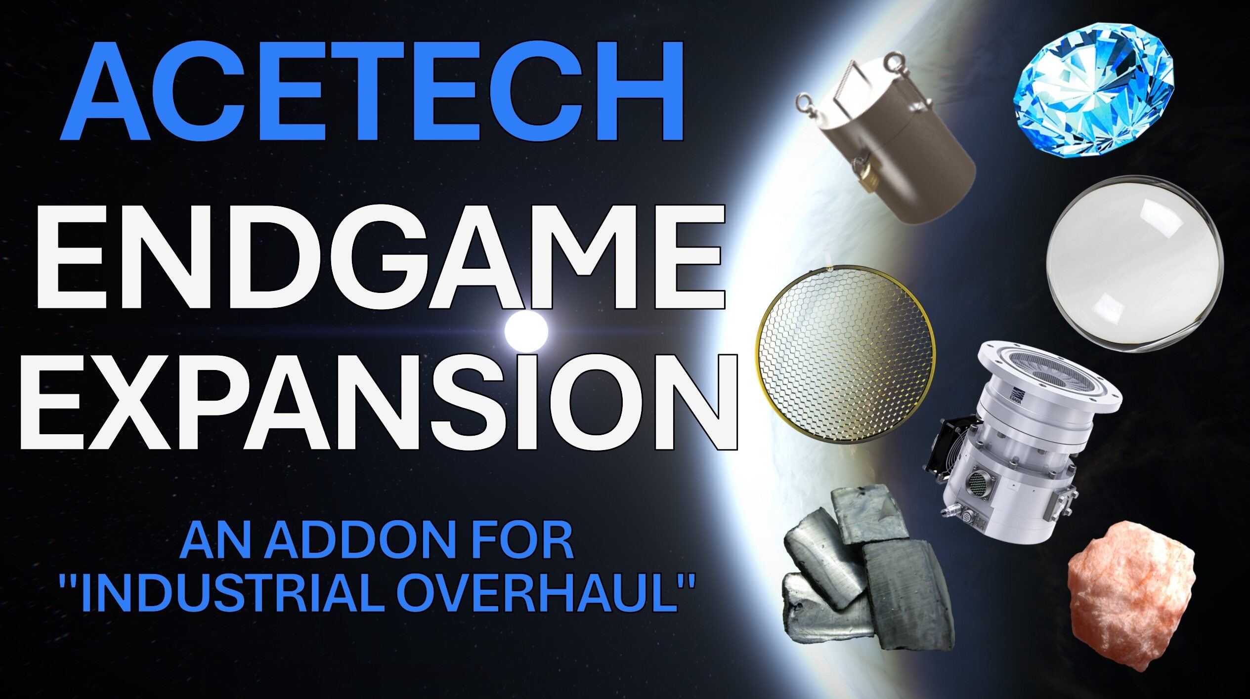 ![]() | AceTech Endgame Expansion for Industrial OverhaulThis mod builds upon Industrial Overhaul, bringing 8 more new ores, new tiers of machines, new thrusters, new turret variants, numerous new components, extended progression loop, and gives every vanilla planet & moon it's own unique purpose and characteristics. |