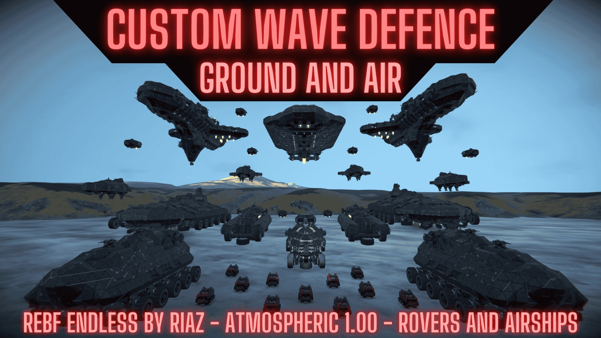 ![]() | PvE Wave Defence - REBF Endless Atmospheric by RiazOne command base to defend, hostile factories pouring out enemy air and ground vehicles relentlessly. How many can you take down before being overwhelmed? |