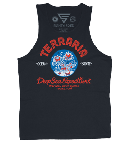 Our good friends at Eighty Sixed have opened preorders for their most recent piece of Terraria clothing - the Ocean Biome T-shirt and Tank Top! The oceans of Terraria are full of nasty things to ruin your deep sea dive, as this new design so accurately portrays. This is also one of a small handful of Terraria clothing designs that are available as a tank top. Click on the images above for more details and to pre-order yours today!