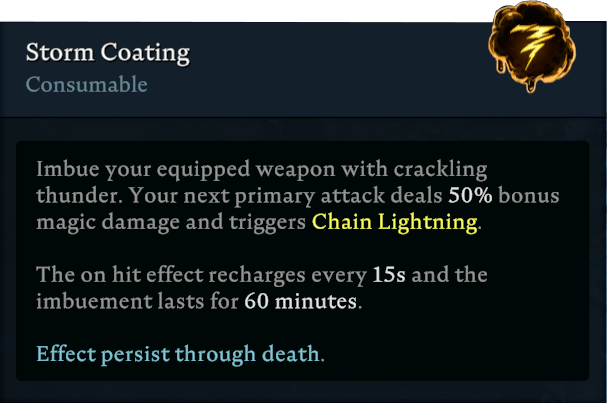 There will be a new weapon coating for each magic type, and you’ll be able to coat individual weapons with these. These powerful on-hit attacks are one more method you can use to specialize your play style and even mix multiple coatings across multiple weapons to switch between. Each one can only be activated every 15 seconds on a single weapon, but if you’re switching between others, you can get it as often as once every 5 seconds.